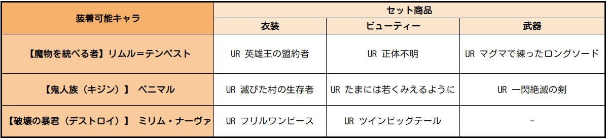 ■[【魔物を統べる者】リムル=テンペスト] コラボセット販売期間