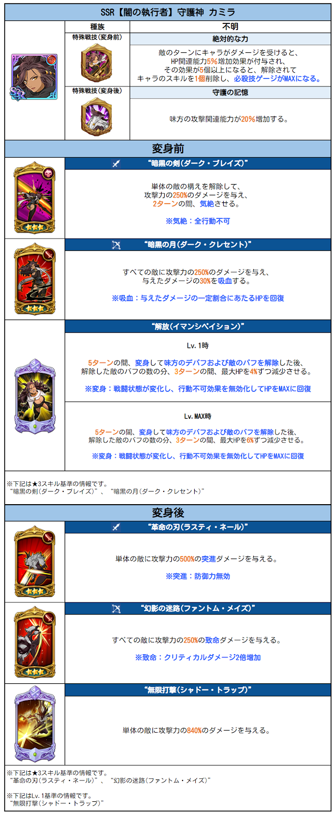 🔽 [SSR【闇の執行者】守護神 カミラ]の必殺技 🔽