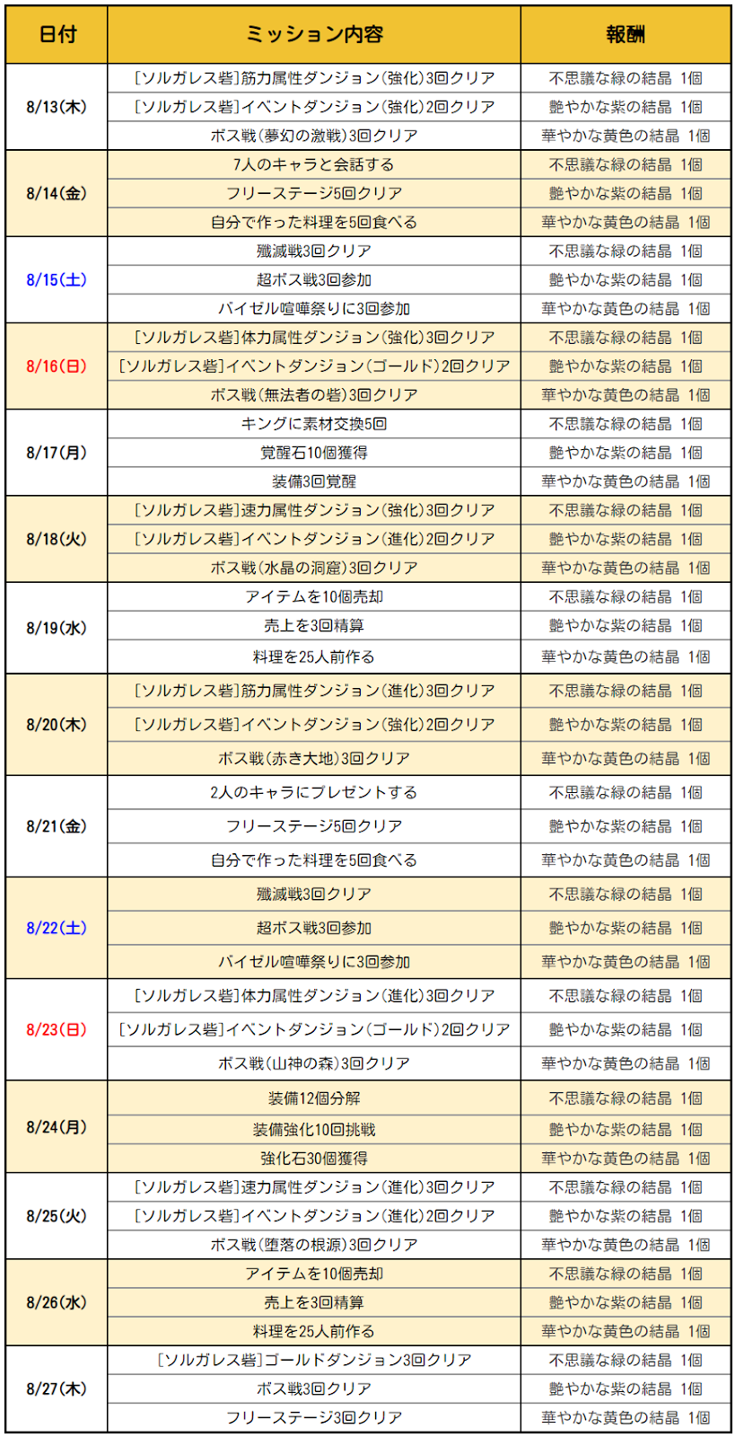 2020年8月13日(木)メンテナンス後 ~ 8月27日(木)メンテナンス前