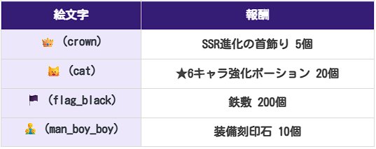 ※最も得票数が多かった絵文字の報酬[SSR進化の首飾り5個]を2025年8月14日(木)メンテナンスにて送付いたしました。【8/14(木)12:00追記】