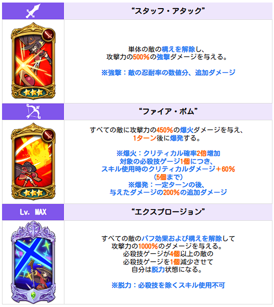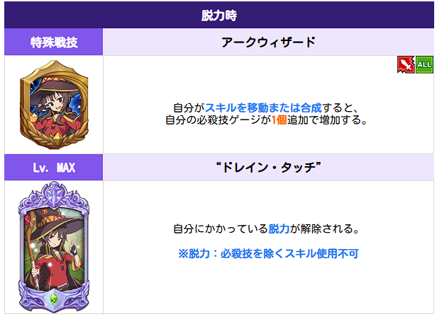 ※[【アークウィザード】紅魔族の少女 めぐみん]は脱力状態で一般スキルを使用すると、効果が適用されません。