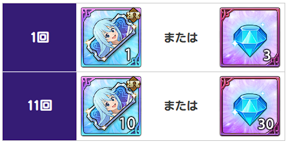 ※当ガチャのマイレージは[1回引く]で3マイレージ、[11回引く]で30マイレージたまります。