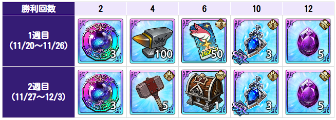 ・すでに達成した闘級の達成報酬は、11月20日(木)メンテナンス後に一括でお送りいたします。