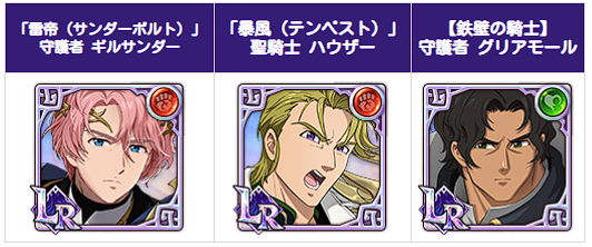 ・「雷帝(サンダーボルト)」守護者 ギルサンダー、「暴風(テンペスト)」聖騎士 ハウザー、【鉄壁の騎士】守護者 グリアモールは、一般LRキャラではなく[LRコレクションキャラ]に分類されます。