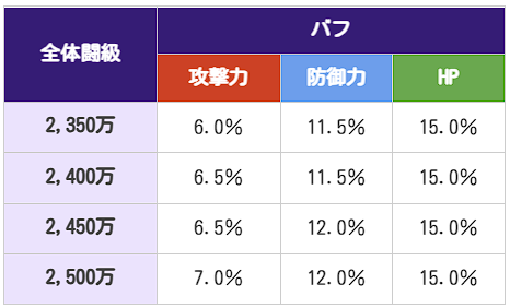 ・すでに達成した闘級の達成報酬は、[キャラ]→[全体バフ]画面に進入すると、一括でお送りいたします。 【11/20(木)09:39追記】