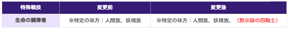 ・[【未知の魔力】小さな英雄 パーシバル]の特殊戦技効果のうち、[特定の味方]の範囲が変更されます。