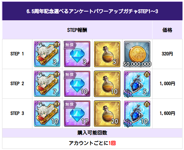 2.6.5周年黙示録フェス選べるアンケートガチャ&選べるアンケートパワーアップガチャ開催