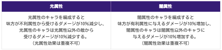 ・[光&闇属性]を持っているキャラは、光属性と闇属性の効果がすべて適用されます。