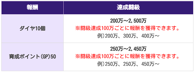 ※報酬で獲得できる育成ポイント(GP)は、各グループ別に量が異なる場合があります。