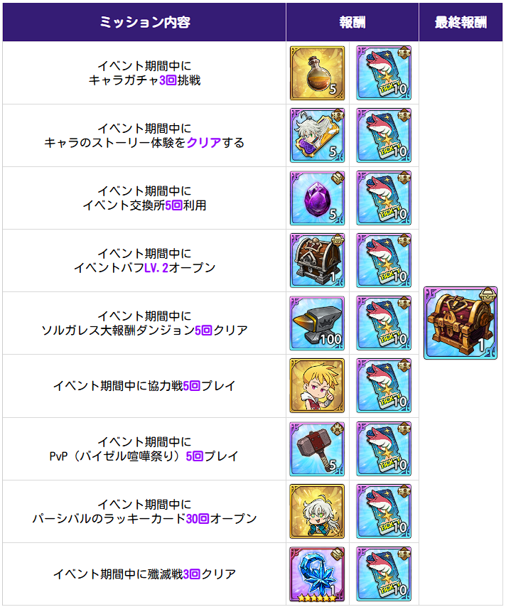 ※イベント報酬のチケットは[『グラクロ』6.5周年黙示録フェス選べるアンケートガチャ][6.5周年黙示録フェスジャンピングボックス第1弾]にてご利用いただけます。