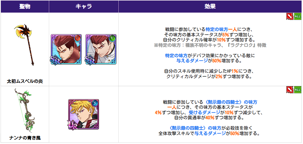 ※聖物およびキャラ種族等に応じて必要な素材はすべて異なります。