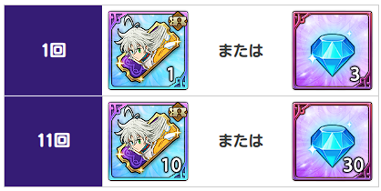 ※当ガチャのマイレージは[1回引く]で3マイレージ、[11回引く]で30マイレージたまります。